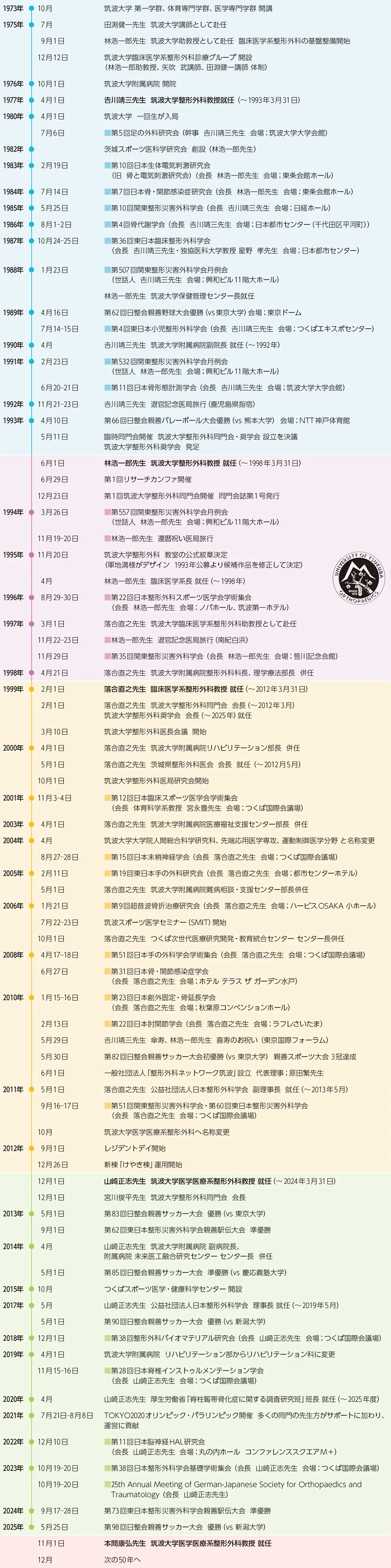 筑波大学整形外科の50年の歴史を動画と年表を通してご紹介します。