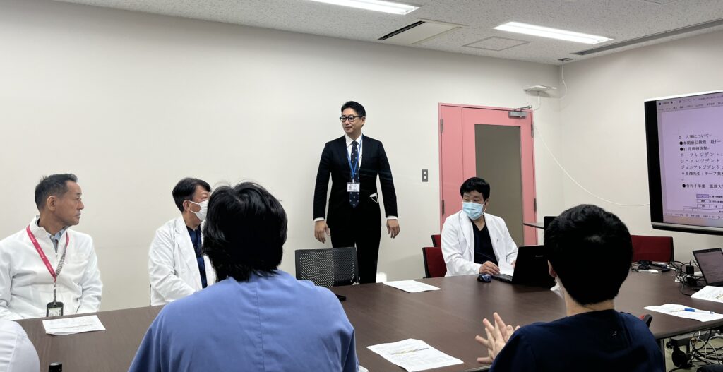 2025.11.04 第5代教授 本間康弘先生 着任 2025年11月1日、本間康弘先生が筑波大学整形外科の第5代教授として着任されました。 初日となる今朝のスタッフミーティングにて就任挨拶がありました。 スローガンは “Imagine the future, and contribute to the future” 今後は本間先生を中心に筑波大学整形外科教室のさらなる発展を期して参ります。 医局長 船山徹