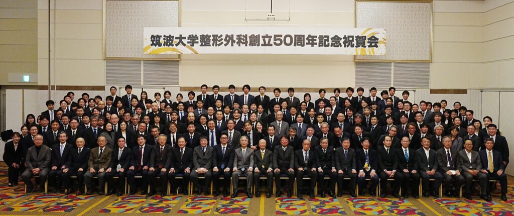 2025.12.22 筑波大学整形外科創立50周年記念祝賀会 筑波大学整形外科では創立50周年を記念して祝賀会を開催しました。 教室の創成期を担ってくれた歴代の先生方から入局1年目の先生方まで、総勢169名の方々にご参加いただきました。 大きな節目を盛大にお祝いするとともに、筑波大学整形外科は次の50年に向けて一歩を踏み出しました! 医局長 船山徹