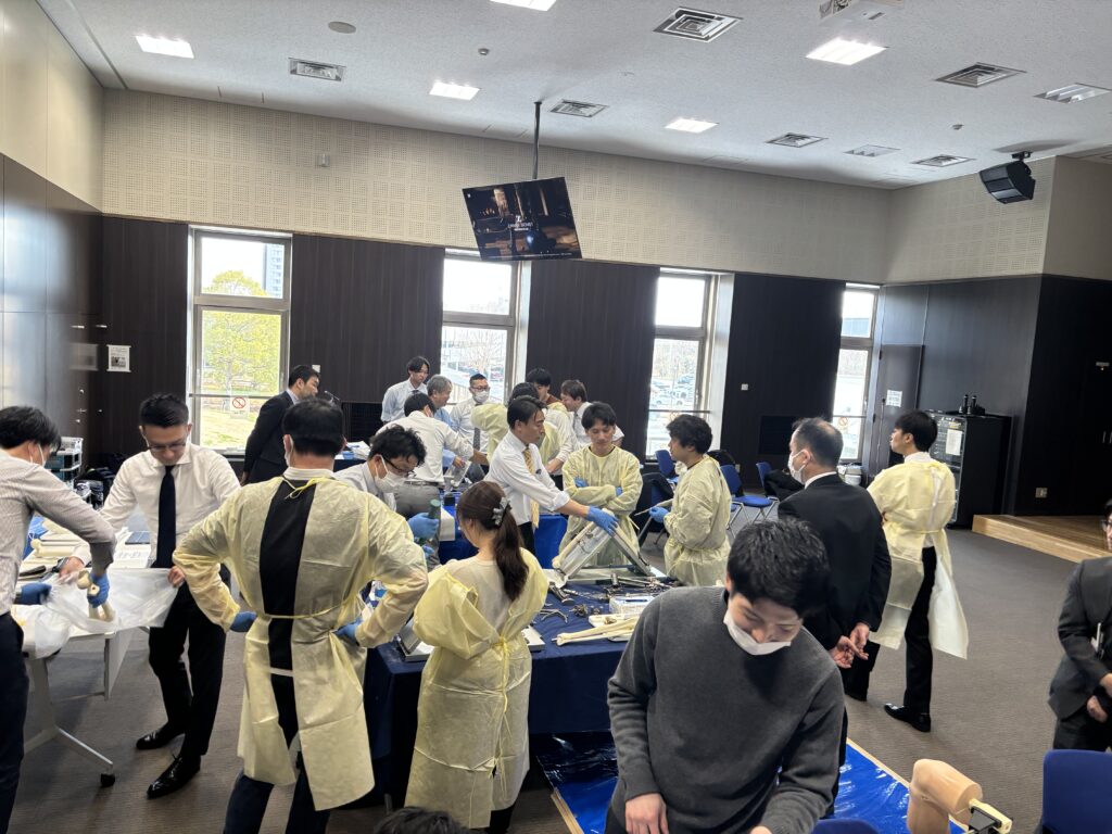 開会に先立ち、いちはら病院の渡辺新先生を中心とした講師の先生方のご指導のもと、「TKA、UKA、関節鏡の基本手技」をテーマとしたハンズオンセミナーを実施しました。多くのレジデントの先生方にご参加いただき、TKA、UKA、関節鏡のデバイスを実際に操作しながら、手術の流れに沿って手技を学ぶ貴重な機会となりました。